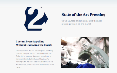 The home screen is not overly busy, but it states clearly who the company thinks it is and what it is about: “Vancouver’s Highest Rated Dry Cleaner, Wedding Gown Specialists, and Master Tailors.”